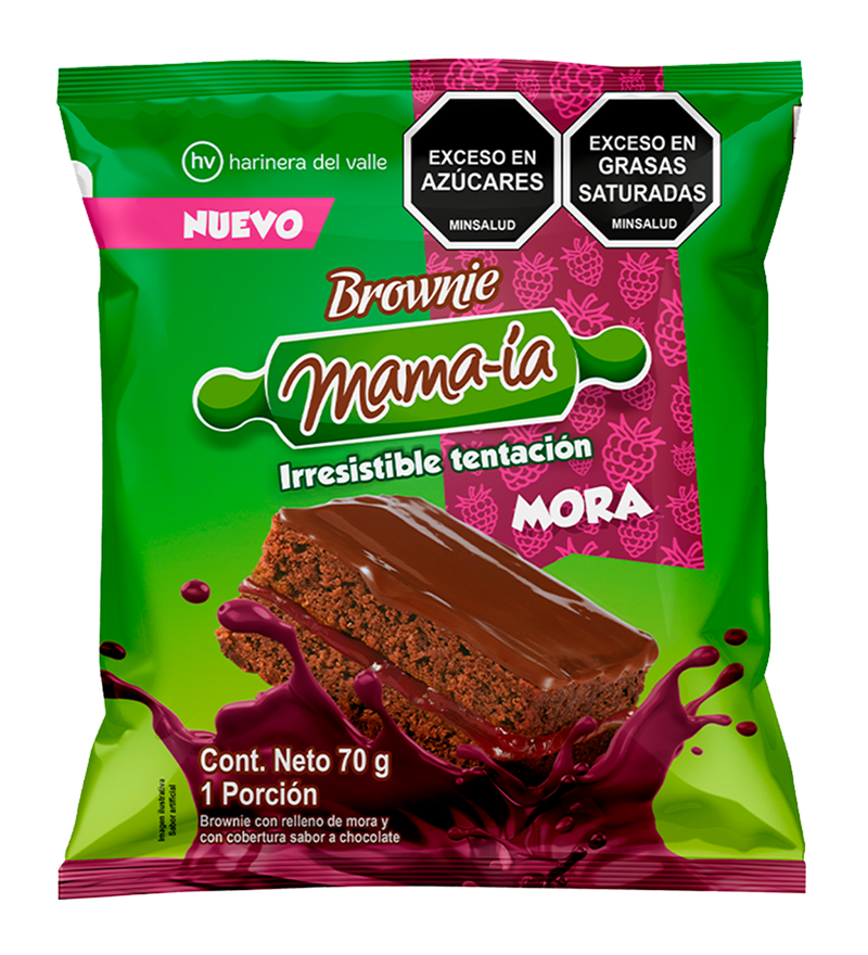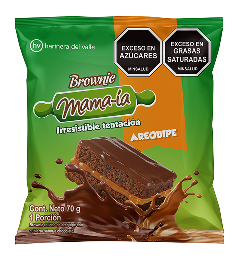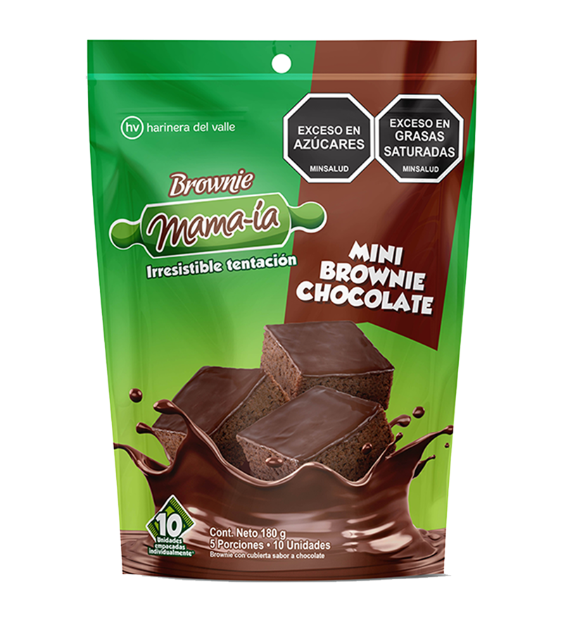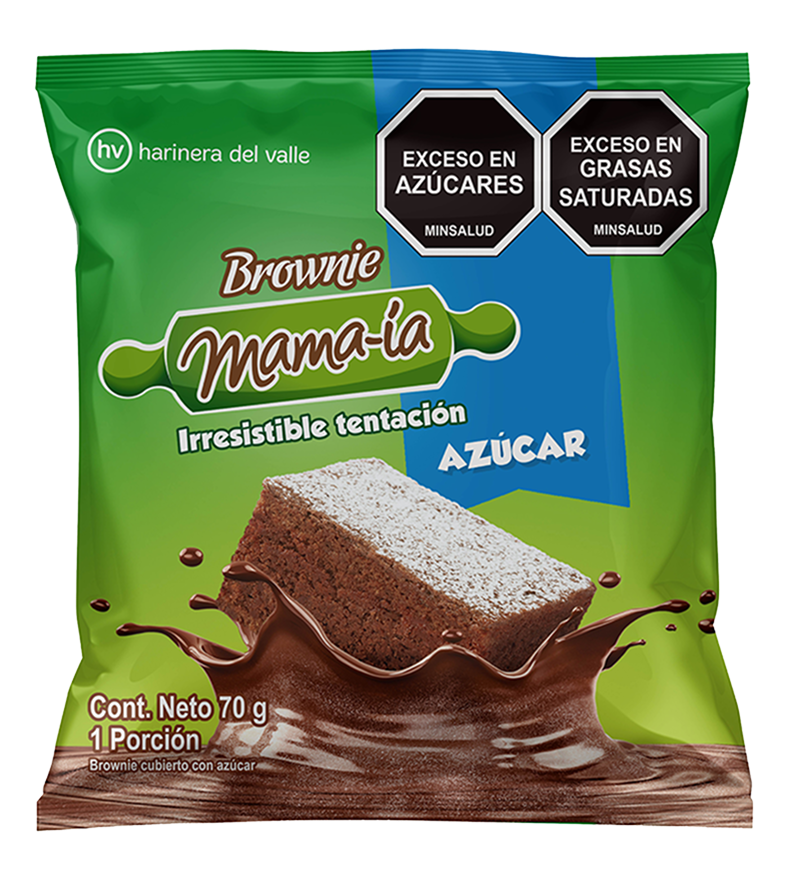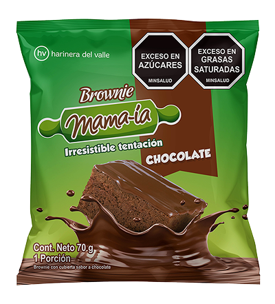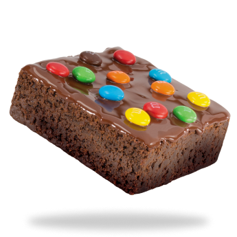 - La superficie lisa y brillante de la cobertura sabor chocolate contrasta con la textura densa y sabor intenso del brownie.